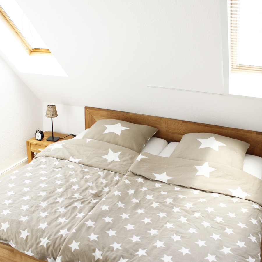 OG: 2 Schlafzimmer (1 Doppelbett 2x2m), (2 Einzelbetten, jeweils 1x2m und 1 Kinderbett), Bad mit Dusche und WC.